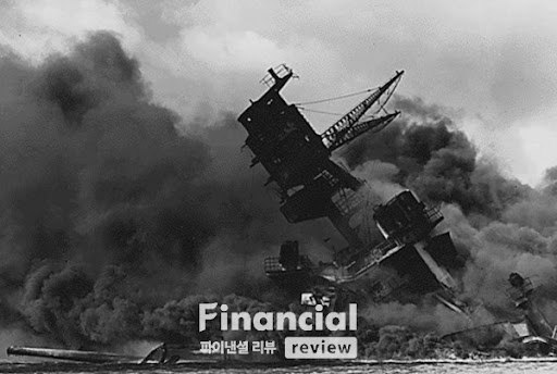 1941년 진주만 기습 공격 당시 침몰하는 애리조나호