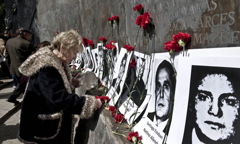 피노체트 정권 시기 희생자를 기리는 산티아고 시민