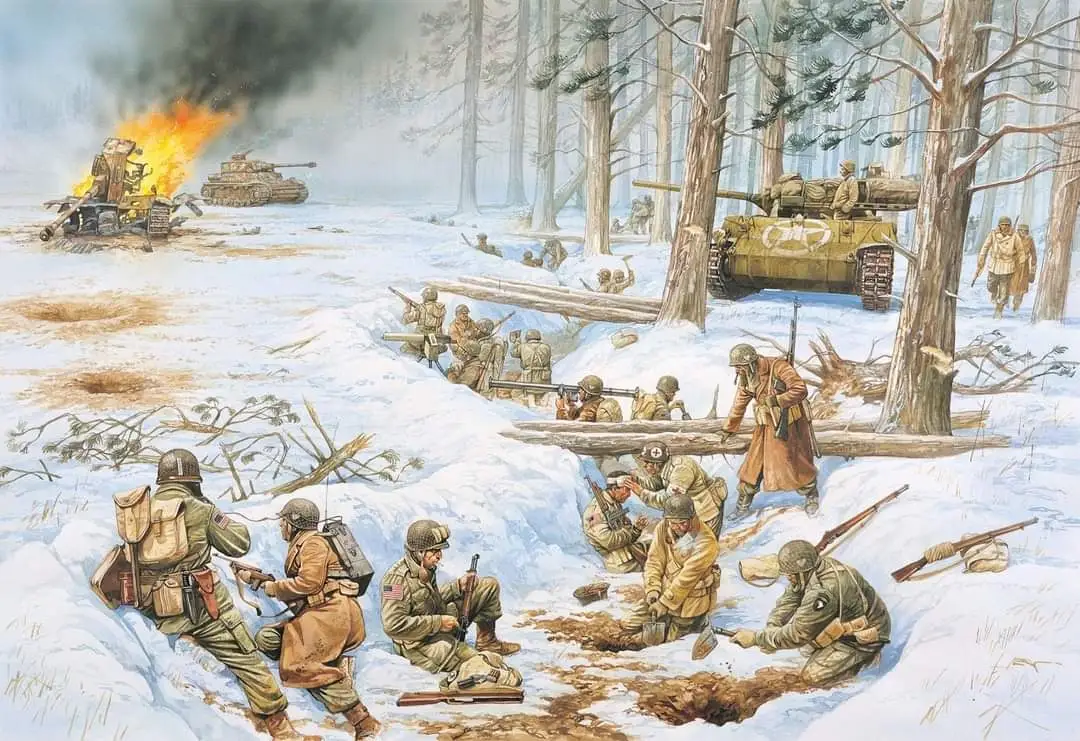 벌지 전투가 격렬해지자, 미군 사령부는 자신들의 최정예 부대를 전투에 투입했는데, 그게 바로 드라마 ‘밴드 오브 브라더스(Band of Brothers)’에 나온 101 공수사단이었다. 독일군에게 있어 벨기에의 바스토뉴는 점령해야 할 거점이었다. 그러나 12월 19일 급속도로 투입된 미군 제101 공수사단은 바스토뉴를 독일군이 차지하지 못하도록 진지를 구축했다. 101 공수사단은 노르망디 상륙작전과 마켓가든 작전 등에서 활약한 베테랑 병사들이었지만, 이들에게는 전차와 싸울 장비를 조금도 갖추고 있지 않았다. 거기다 이들의 투입에도 불구하고 바스토뉴는 독일군의 격렬한 포위를 받고 있었다. 바스토뉴를 대상으로 한 포위전에서 독일군은 맹렬한 포격을 이 도시에 퍼부었다. 여기에 투입됐던 공수부대들도 독일군 포격에 몸을 숨기기 바빴다. 이는 드라마 밴드 오브 브라더스에서도 잘 묘사된 바가 있다.