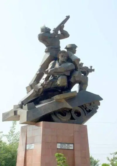 현재 압박에 있는 승전 기념 동상