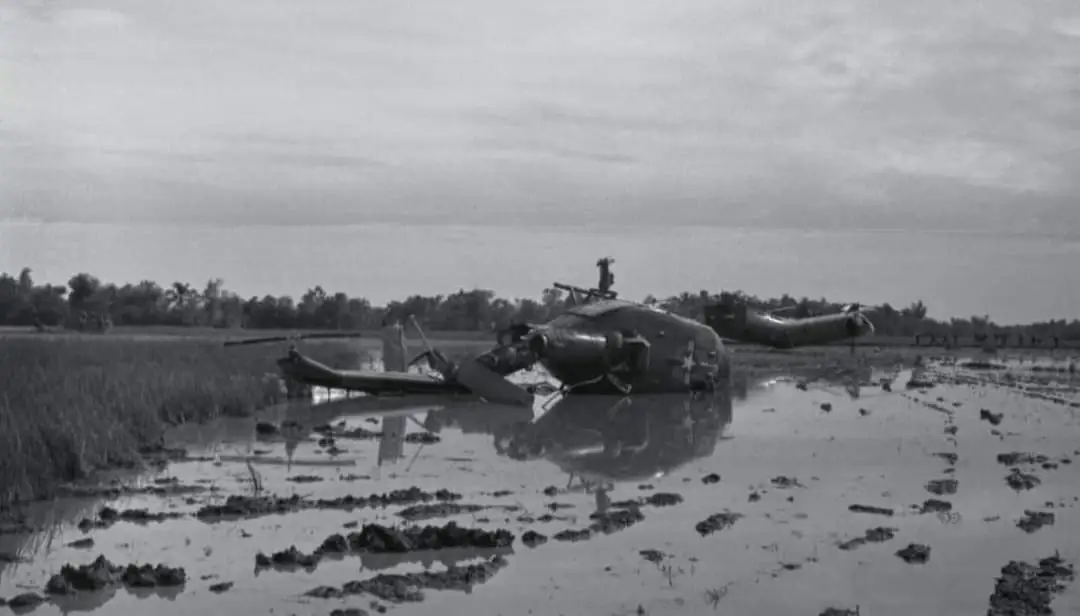 압박 전투에서 파괴된 헬리콥터: 미군 고문단도 이 전투에서 전사했다.
