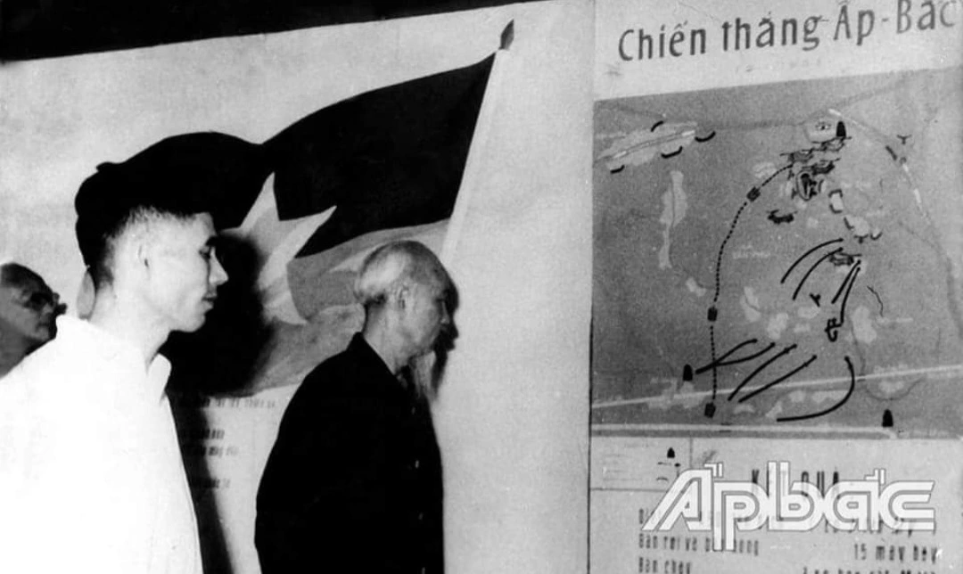 압박 전투의 해방전선 측 작전 지휘도를 보고 있는 호찌민: 북베트남에 있던 호찌민 또한 이 소식을 듣었다.