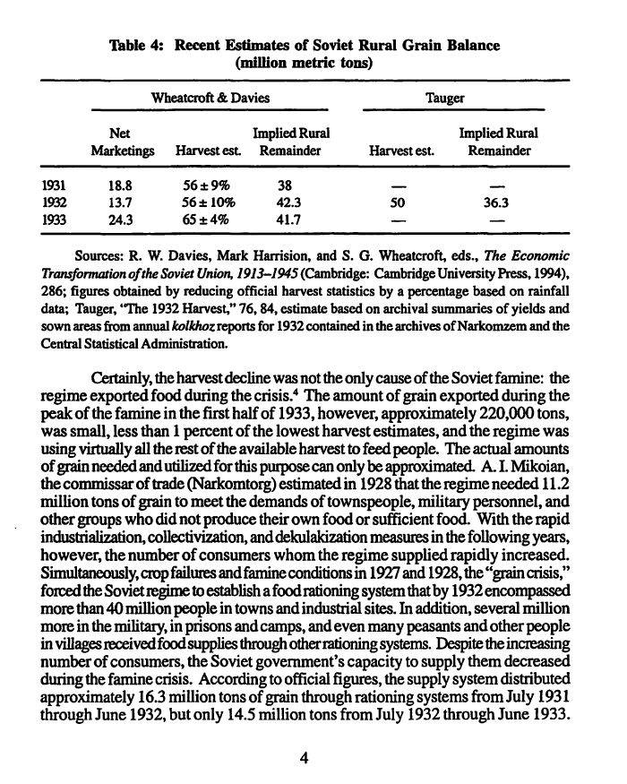 아무튼 1932년 5월 이후 일련의 조치들에서 스탈린은 굶주리는 농민들을 돕기 위해, 우크라이나의 요구에 응답하여 곡물의 수매량을 감축한 것이다. 심지어 반공주의 성향의 역사학자 로버트 서비스마저도 본인이 쓴 스탈린 전기에서 “스탈린이 1932년 8월부터 우크라이나에서 징발할 곡물의 양을 줄었다. 그의 승인에 따라 정치국은 할당량을 반으로 줄여 고통을 덜어주었다. 1933년에 수확이 끝난 뒤에는 볼가 강 유역과 우랄 지방, 카자흐스탄에서도 조달할 양을 낮췄다.”고 썼다. 이와 같은 사실에서 소련 공산당이 기근 구제정책을 적극적으로 했음을 알 수 있다. 따라서 홀로도모르를 스탈린이 의도적인 제노사이드라고 부르는 것은 역사왜곡이다.