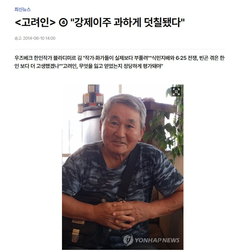 지난 2014년 한국의 연합뉴스는 우즈베키스탄의 수도 타슈켄트에 사는 고려인 김 블라디미르(한국명 김용택씨)를 인터뷰했다. 김씨의 경우 한국에서 만든 고려인 관련 다큐멘터리나 뉴스에 자주 등장하는 인물이다. 흥미롭게도 그는 연합뉴스와의 인터뷰에서 “강제이주 과하게 덧칠됐다”는 입장을 밝혔다. 당연한 얘기지만, 해당 인터뷰 대상자인 김 블라디미르씨는 고려인 강제 이주자의 후손이다. 그는 1946년 우즈베키스탄에서 태어났고, 그 당시 소련군 장교였던 큰형님을 따라 북한으로 이주하여 함경북도 지역에서 어린 시절을 보내고, 8월 종파사건 이후 다시 소련으로 돌아온 사람이다. 또한, 젊은 시절 앞서 언급한 고려인 사회 대표 언론인 ‘레닌기치’의 기자로 활동했던 이력을 가지고 있다.