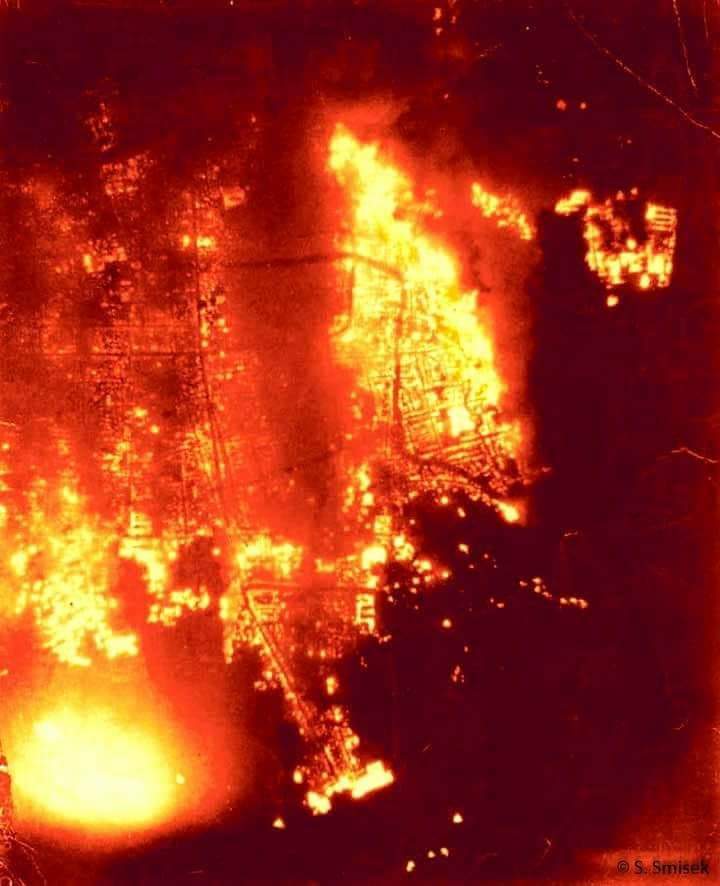 무차별 폭격으로 불타고 있는 도쿄의 모습