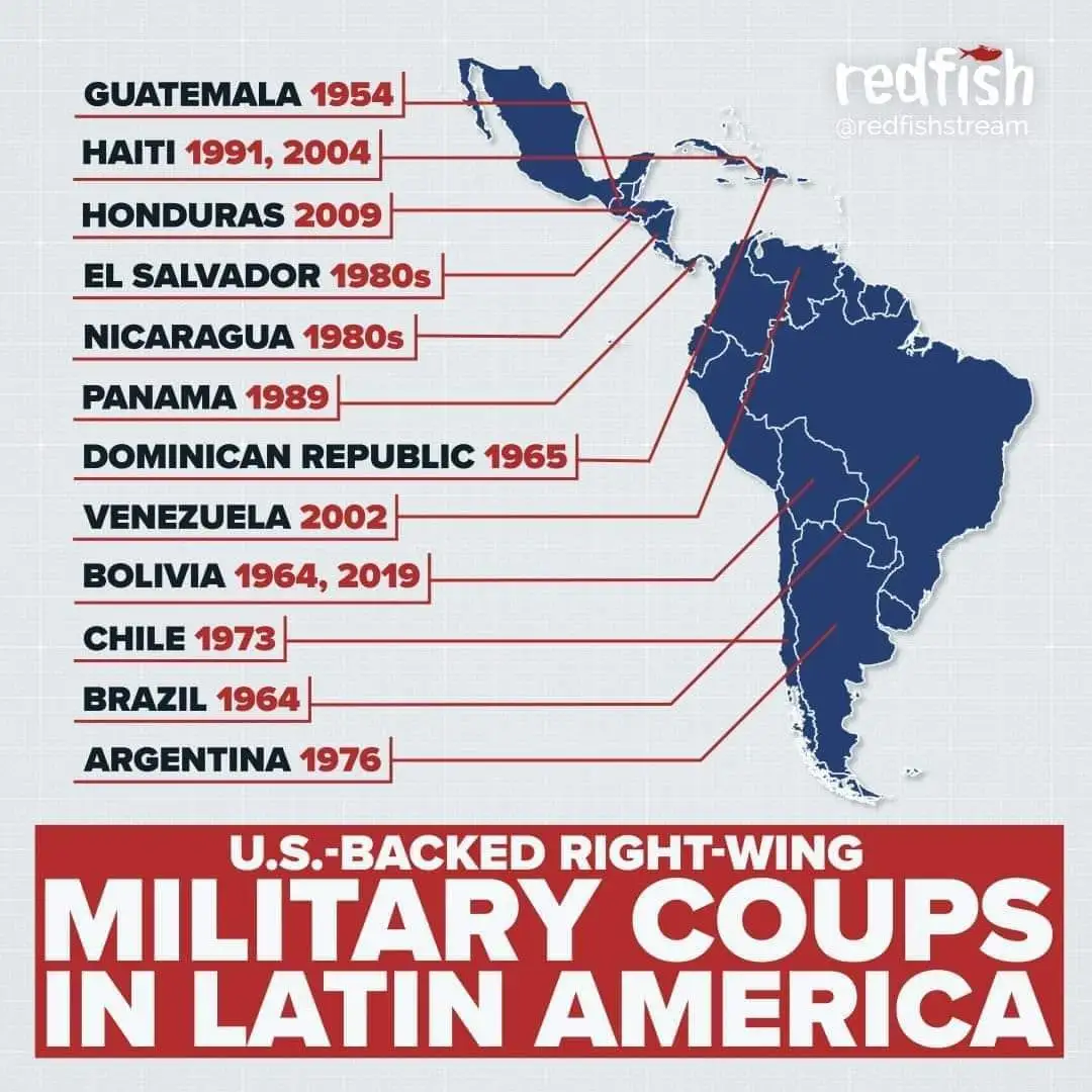 1970년 칠레에서 국민투표로 탄생한 아옌데 정부가 미국이 사주한 피노체트의 쿠데타로 불과 3년 만에 무너지고, 칠레에 17년간의 군부독재가 설립되며 수만 명이 죽고 수십만 명이 감옥 및 강제수용소에 구금된 역사를 생각해 보면, 소위 미국이 앵무새처럼 반복하는 민주주의나 인권 등은 자신들의 폭력 수단과 자본팽창을 합리화할 수단일 뿐이다.