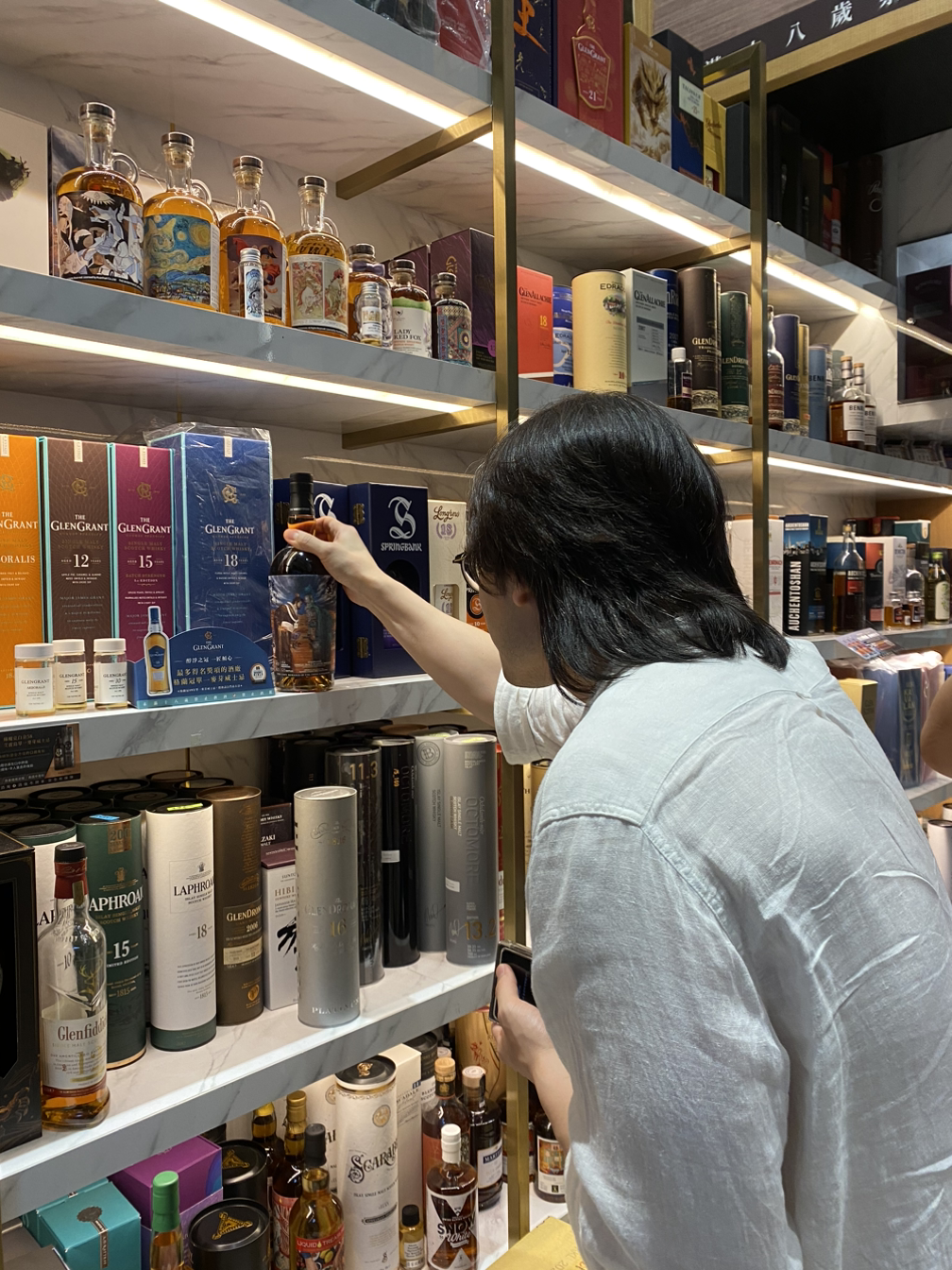 택시를 타고 위스키 투어의 2번째 샵, ‘단텅(Danteng)‘에 도착했다. 단텅은 위스키뿐만 아니라 와인, 한국 소주, 담배 등 다양한 제품들을 다루는 매장이다. 총 2층으로 이루어져 있는데 1층은 위스키와 소주, 담배 등이 진열되어 있었고 2층은 올라가진 않았지만 와인이 메인인 듯했다.