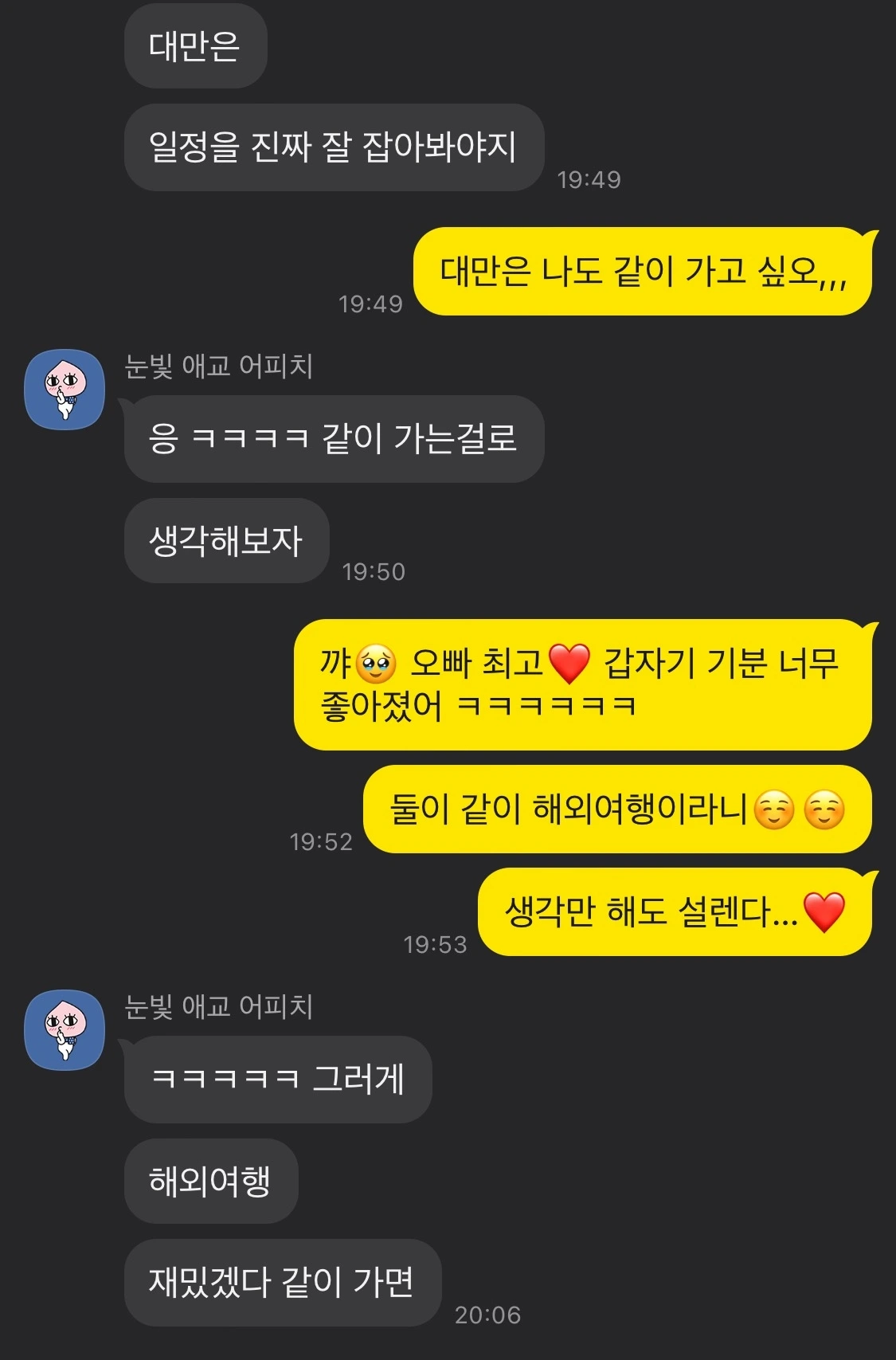 일상 대화 속에서 자연스럽게 대만 여행을 가고 싶다고 언급하기