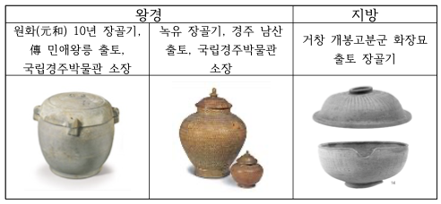 한편 삼국시대에는 중국에서 전래된 불교를 국가적으로 수용하면서 많은 문화전통에 변화가 나타나며, 삼국 통일을 이룩한 신라 문무왕이 남긴 유조(遺詔) 중 ‘依西國之式以火燒葬’ 화장을 실시할 것을 당부하는 내용은 가장 보수적인 의례행위인 상장의례에 변화가 나타났음을 알려준다(차순철, 2008). 화장을 흔히 불교식 장법이라고 부르는 이유에 대해서는 불사리 신앙과 장골기와의 연관성에서 밝혀진 바 있다(정길자, 1988).