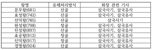 표 1. 화장 관련 기사가 확인되는 신라 국왕