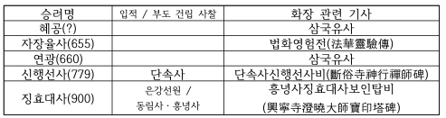 표 2. 화장 관련 기사가 확인되는 신라 승려