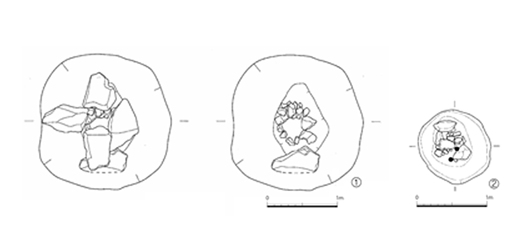 4. 율하리 수혈은 주거 住居와 매장 埋葬 영역 사이에, 여의곡 수혈은 생산 生産 과 매장 埋葬 영역 사이의 공터에 위치하고 있어 농경신이나 조상신과의 관련성을 생각해볼 수 있습니다. 또한 여의곡 수혈의 경우, 토기편과 석기편이 출토되기도 합니다.
