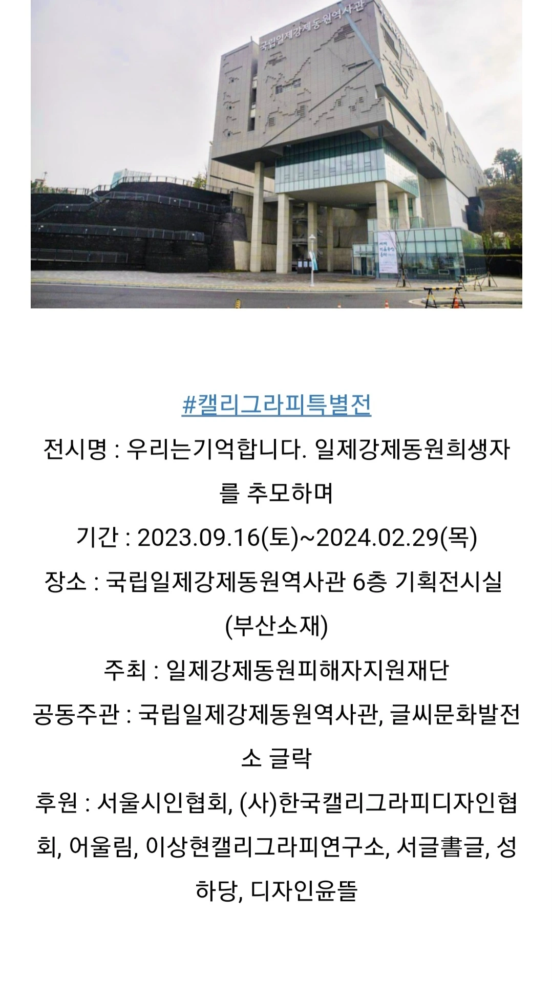 국립일제강제동원 역사관6층 기획전시실 2023.9.16~2024.2.29