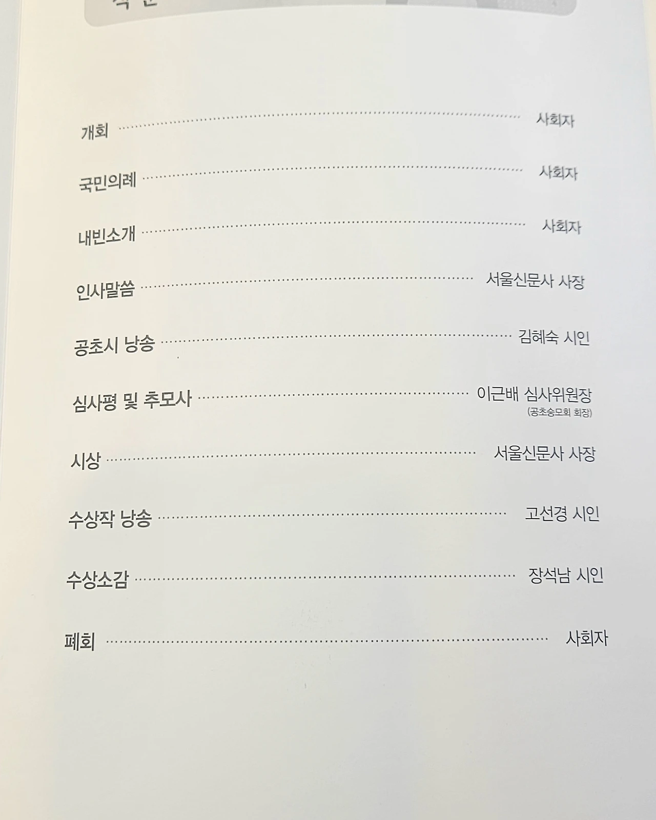 정끝별 시인(이화여대 국어국문학과 교수), 나희덕 시인(서울과학기술대 문예창작학과 교수) 등이 참석했다.