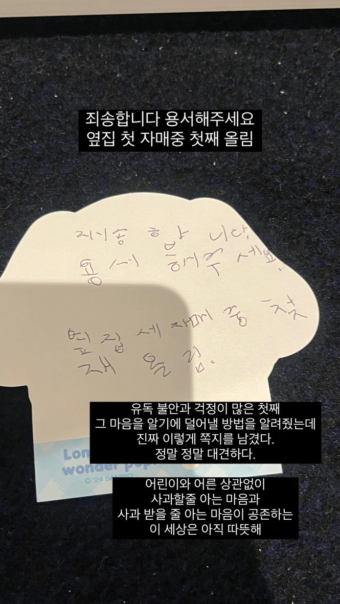 “방에서 모두가 깊게 자고 있어서 아무도 신경 안 썼어요. 걱정 하지마요. 쪽지가 너무 귀엽네요 ”