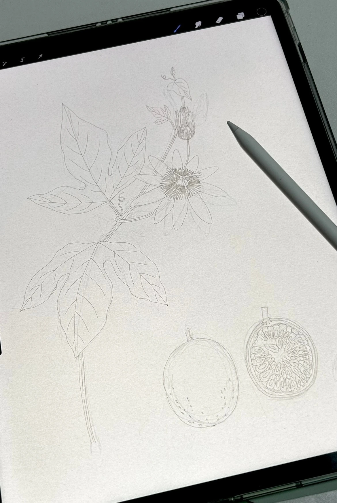 직접 관찰하고 그린 패션푸르츠 세밀화, 디지털 드로잉