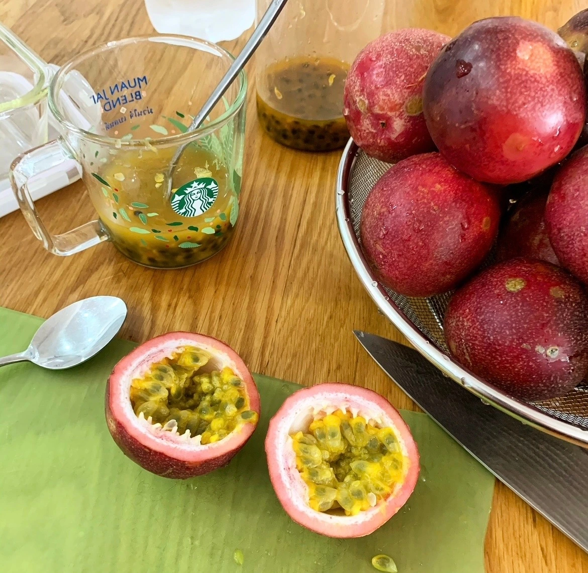 패션프루츠는 단맛보다는 신맛이 강해 동남아에서는 주스나 에이드 같은 음료로 자주 소비된다. 나도 가끔 감기 기운이 있거나 비타민C가 필요할 때 직접 만들어 마시곤 한다. 만드는 방법도 간단하다.