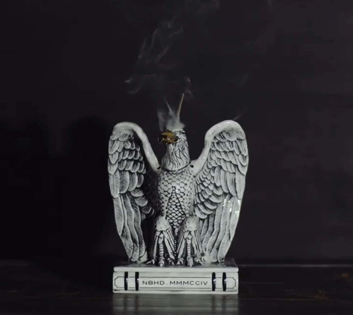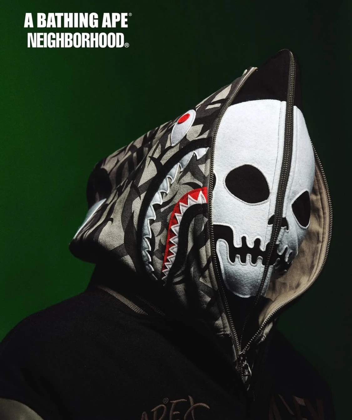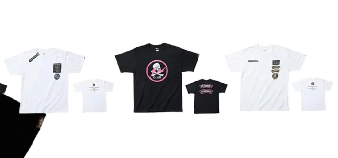이런 네이버후드의 또 하나의 시그니처는 바로 해골문양과 고급스러우면서도 불량한 이미지를 풍기는 폰트였는데요. 권위를 상징하는 중세시대의 고딕체인듯 하면서도 타투의 장르인 치카노에서 주로사용하는 레터링과도 비슷하게 보이는 이러한 폰트는 미국 바이커 갱단인 ‘헬스엔젤스’에서 영향을 받았다고합니다. 이렇게 네이버후드는 패션시장에서 자리를 잡아가고, 우라하라 이웃들의 브랜드인 프라그먼트,베이프,마스터마인드,비즈빔 과의 협력을 진행하면서 세계시장에도 진출하기 시작합니다.