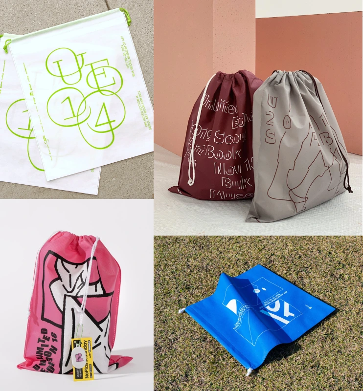 책을 좋아할 만한 사람들이 모일 법한 행사(예를 들면 다른 독립출판 페어 혹은 뮤직 페스티벌이라거나..)에 가면 이 부직포백을 들고 다니는 사람들이 종종 보인다. 나는 그들에게 당장 반갑게 인사해도 어색하지 않을 정도의 내적 친밀감을 느낀다. (물론 낯가림 인간은 그런 거 안 한다.)
