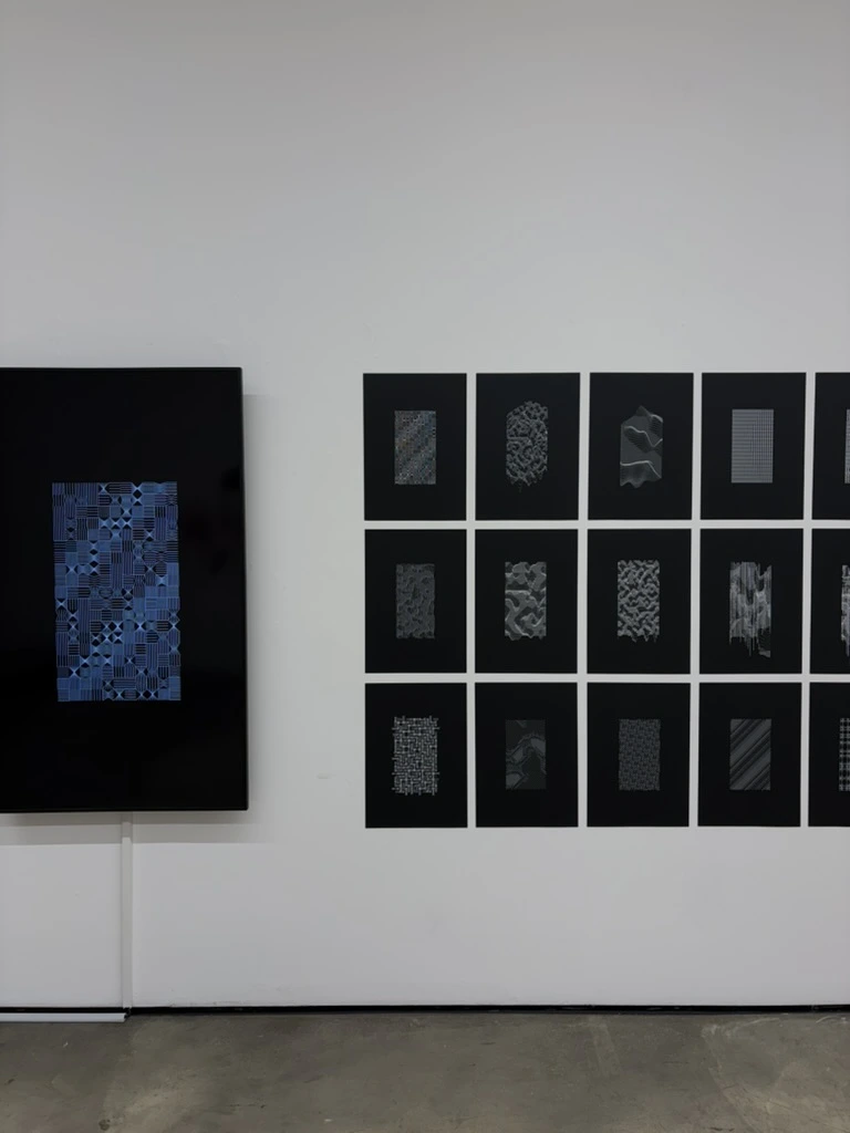 약간의 방점을 찍어 서효정 작가의 작품 이야기를 하고 싶어 굳이 단락을 나누어 보았습니다. 마지막으로 이야기할 작업은 서효정 작가의 <Weaving Codes>입니다. 작가가 팬데믹 시절부터 이어져 온 매일의 수행적인 코딩 기록이 남긴 패턴은 벽을 채우고도 남을 정도가 되었습니다.