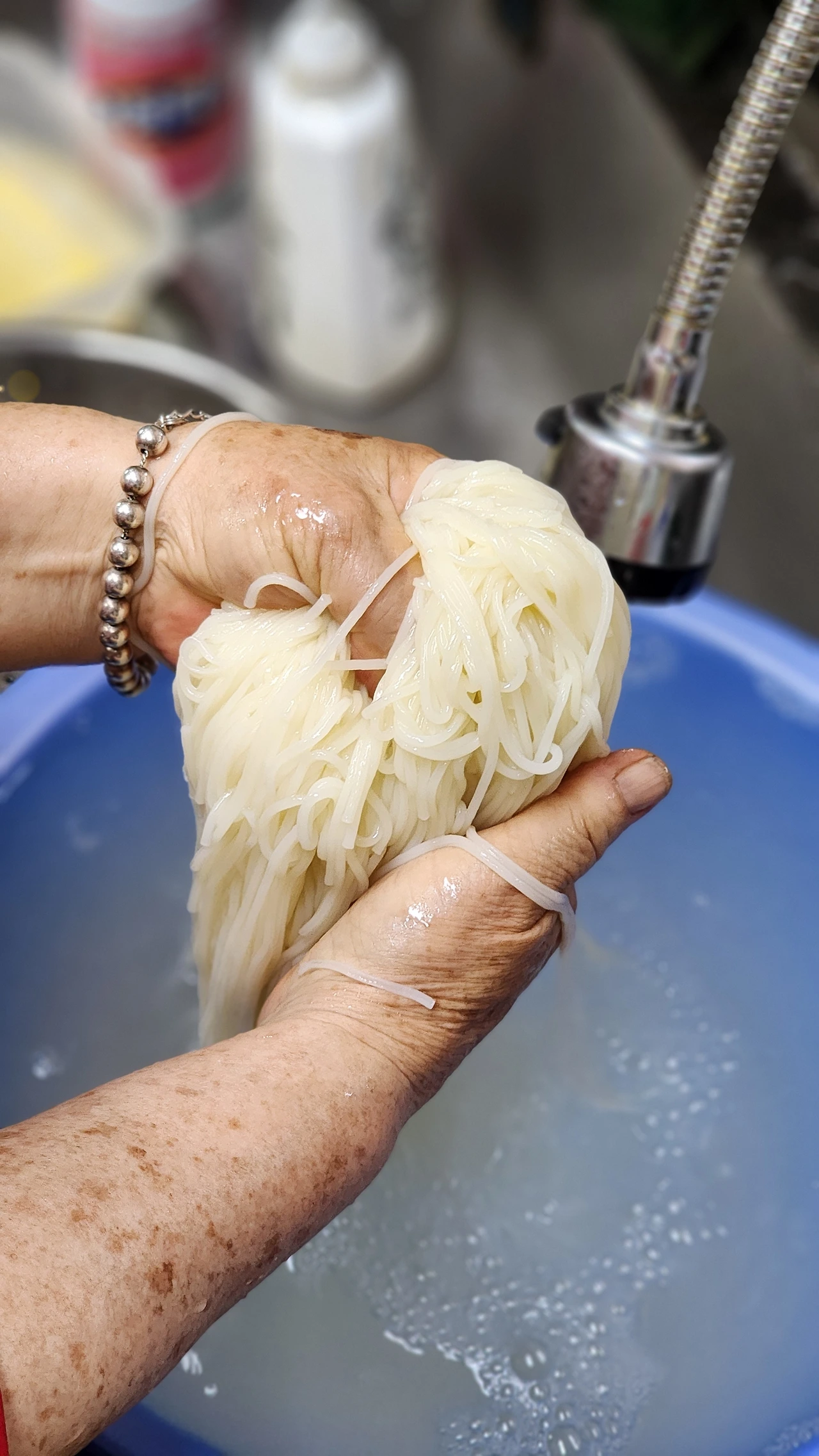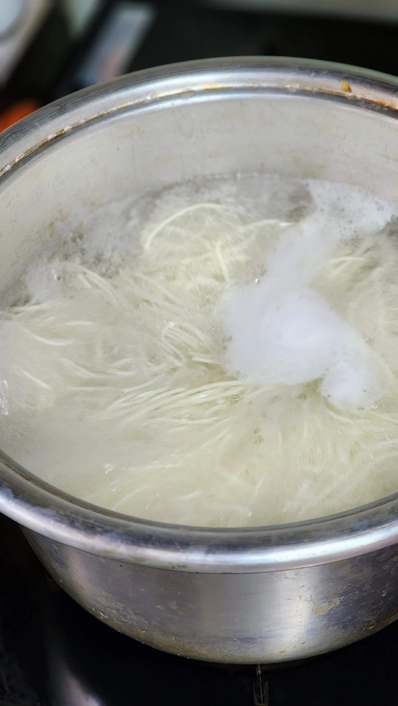 엄마는 다 늙은(?) 두 딸년을 위해 신이 나서 물을 올리고 국수를 삶으셨다. 파르르 끓는 물을 달래가면서 척척 면 빨래까지 속전속결! ㅋㅋ