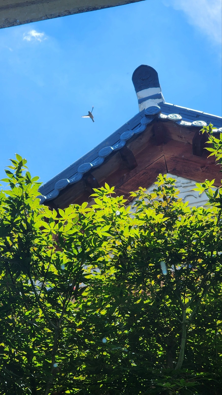 거의 일 년 만에 언니와 단 둘이 간 커피숍에서, 유난히 빤히 바라보는 참새를 보았다. 뭐 저렇게 직관중인가? 싶을 정도로. 사진을 찍겠다고 휴대전화를 든 순간 '비행 참새'의 자태만 남기고 사라졌다.
