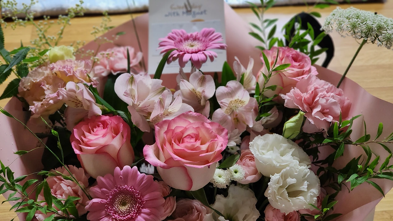 아침을 한술 떠먹고 자전거를 탔다. 비가 와서 따님은 오지 말라고 했더니 막내가 온다고 했다. 어제 제자들 4명이 꽃다발을 들고 찾아왔다면서, 꽃이 너무 예뻐서 법당에 놓아야 한다고 빗속에 왔다. 국거리, 계란, 이것저것 사가지고 왔다. 역시 꽃다발이 예뻤다. 같이 법당에 가서 놓고 인사드리고 왔다.