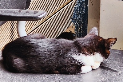 (고양이 원주인은 따로 있다. 주인이 밥을 주지 않아서 1월부터 엄마가 불쌍하다고 밥을 주며 거두셨다. 시골 고양이들이 그렇듯, 마음껏 돌아다니는 자유가 있지만 무엇이든 다 먹고 다닌다. 엄마 스토커 ‘흐약이’는 원주인이 모른 척해서 엄마가 애지중지 간식에, 츄르에, 고양이 우유에, 비싼 사료까지 먹이면서 10개월을 돌보았다. 흐약이는 검둥이와 얼룩이 새끼 두 마리를 우리 집에 남겨주었다. 검둥이가 꼭 제 어미를 닮아서 신기하다 했더니, 이렇게 제 모습을 남기고 떠났나 보다.)