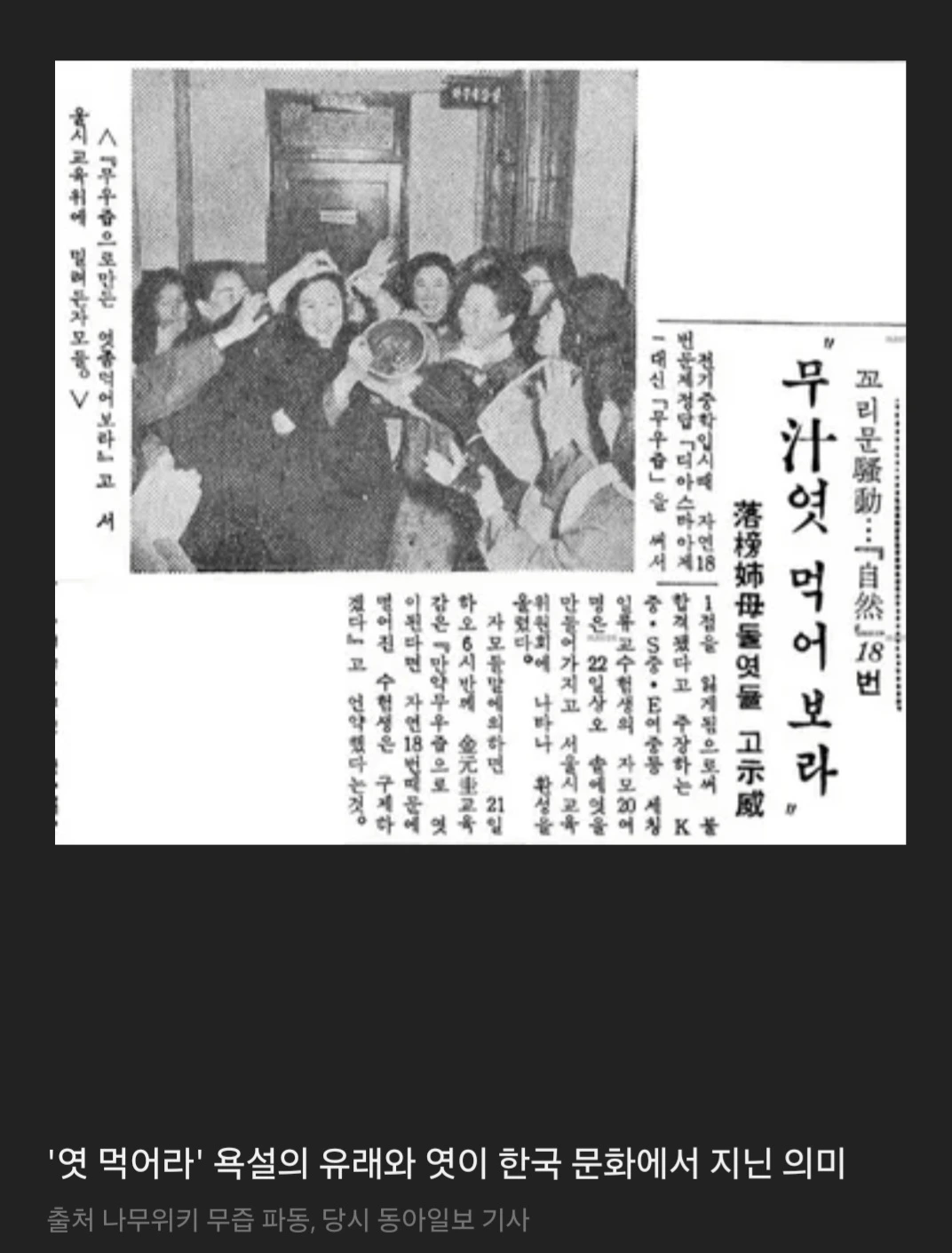 예전에 선배 선생님께 생생하게 들었던 무즙엿 사건이 생각난다. 입학시험에서 무즙으로 엿을 만들 수 없다는 문제가 나오자, 학부모들이 직접 무즙으로 엿을 만들어 시위를 했다는... 그 전설을 들었었다. 자식의 앞날을 걱정한 어머니들의 외침!