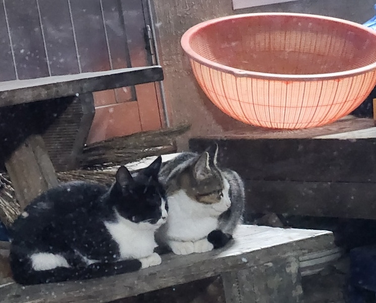하루는 어미 고양이가 집에 안 들어와서 걱정을 했지요. 그러더니 며칠이 지나니 옆집에서 우리 고양이가 죽어 있다고 하십니다. 어디에서 무엇을 잘못 먹었는지 마음이 아팠지요. 그래도 새끼들이 자기들끼리라도 밥도 먹고 하며 잘 크고 있습니다. 사료가 없어서 자기들이 먹는 게 아닌 사료를 사다 주었더니 잘 안 먹네요. 자기 입에 안 맞는지, 배가 안 부른 지 마루 끝에 두 마리가 똑같이 앉아서 방만 바라보고 “야옹야옹” 하면서 보고 있으니 웃음이 납니다. 막내에게 웃으면서 사진을 찍어 보내고 이야기를 하니, 더 주라고 하네요.