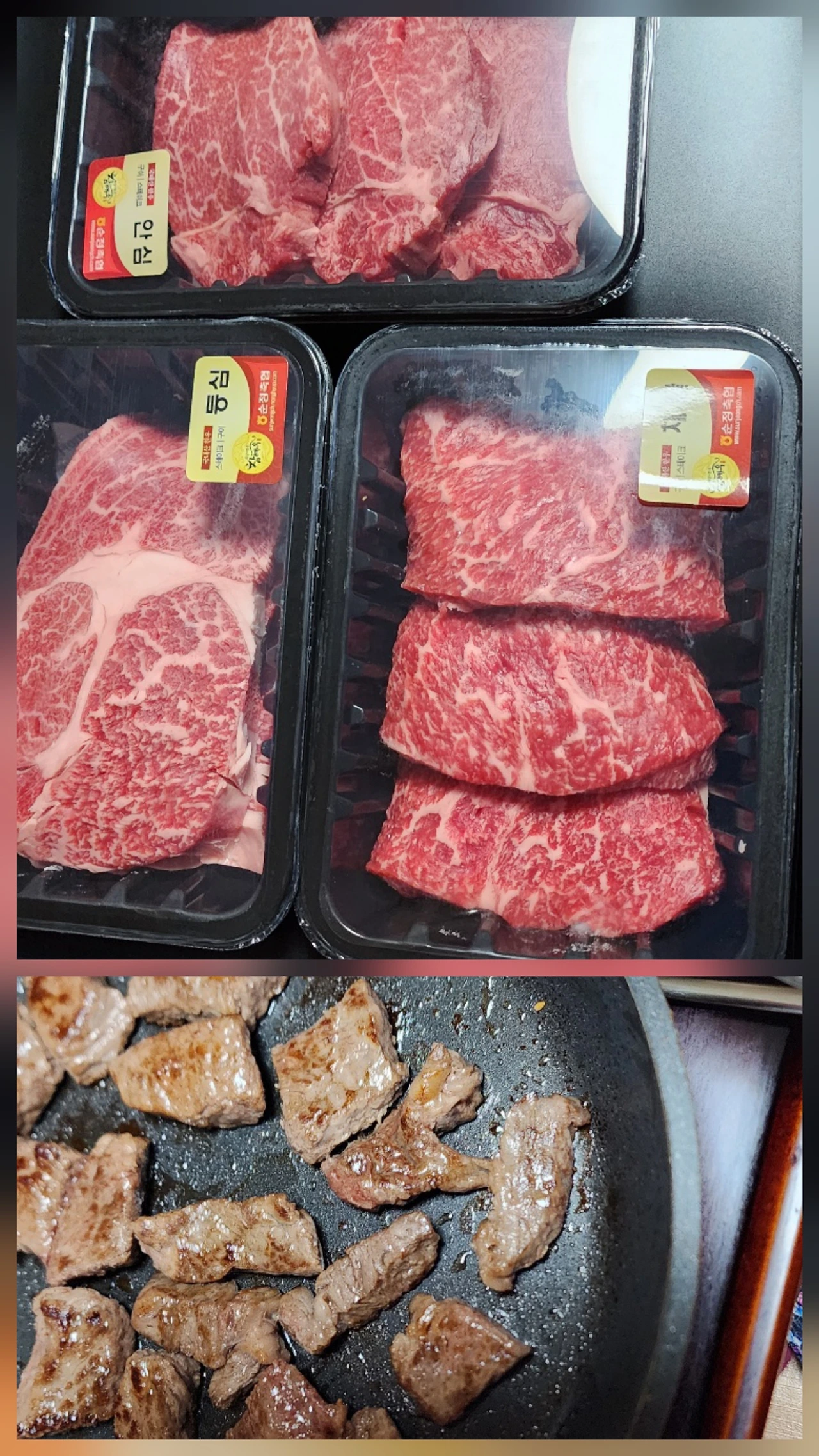 저녁에는 큰딸이 보내준 소고기와 고모가 준 달걀을 먹었습니다. 밥도 안 하고 나만 챙겨 먹으니 쉬웠습니다.