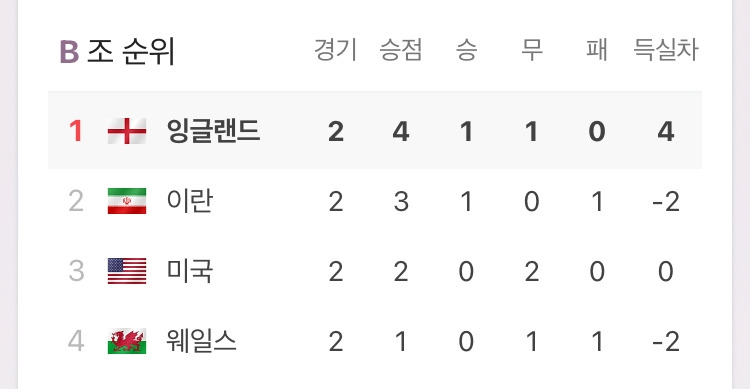 웨일스도 1차전에서 미국과 무승부를 기록했기 때문에 승리가 필요했지만, 이번 패배로 1 무 1패가 되어 16강 진출 가능성이 불투명해졌다.