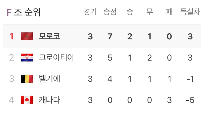 벨기에를 꺾은 모로코는 16강에서 E조 2위 스페인을 만난다.