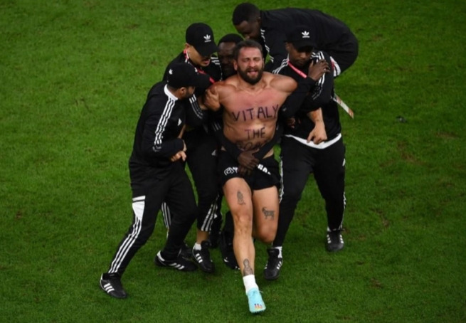 관중 난입. 웃기긴 한데, 옷 벗는 건 집에서 샤워할 때나 제발.