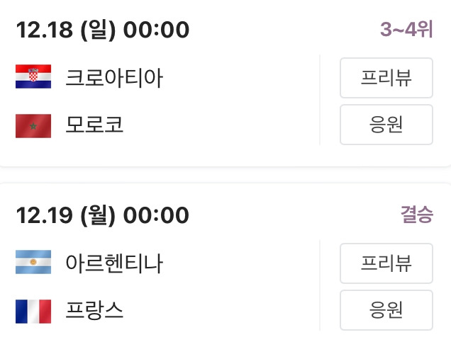 하지만 음바페의 프랑스는 2회 연속 결승 진출에 만족하지 않을만큼 강하다. 우리는 평생 살면서 보기 어려운 2회 연속 우승을 실시간으로 볼 수 있을 것이다.