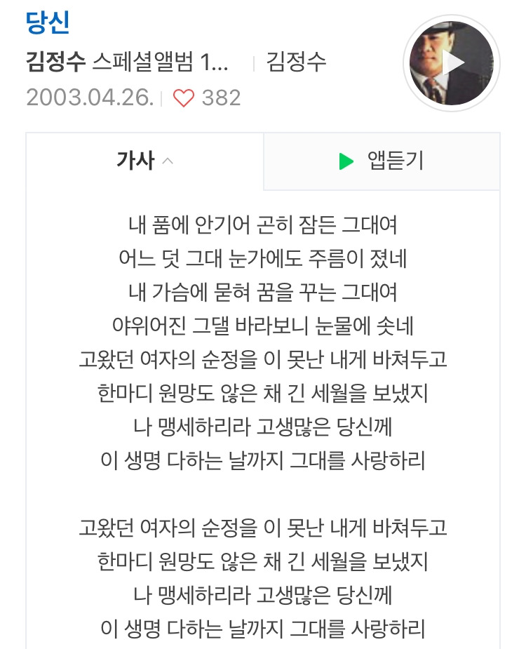 한번 더 노래를 부를 기회가 있다면, 부르겠다고 하신 곡이었어요. 말하자면, 준비된 곡이었던 거죠.