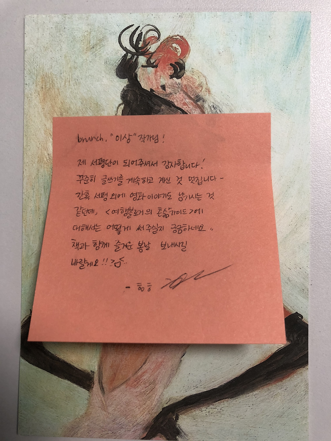 이번엔 Post Card에 Post It까지 붙이셔서 깨알같이 서평을 어떻게 쓰실지 궁금하다는 말씀을 남기셨다.