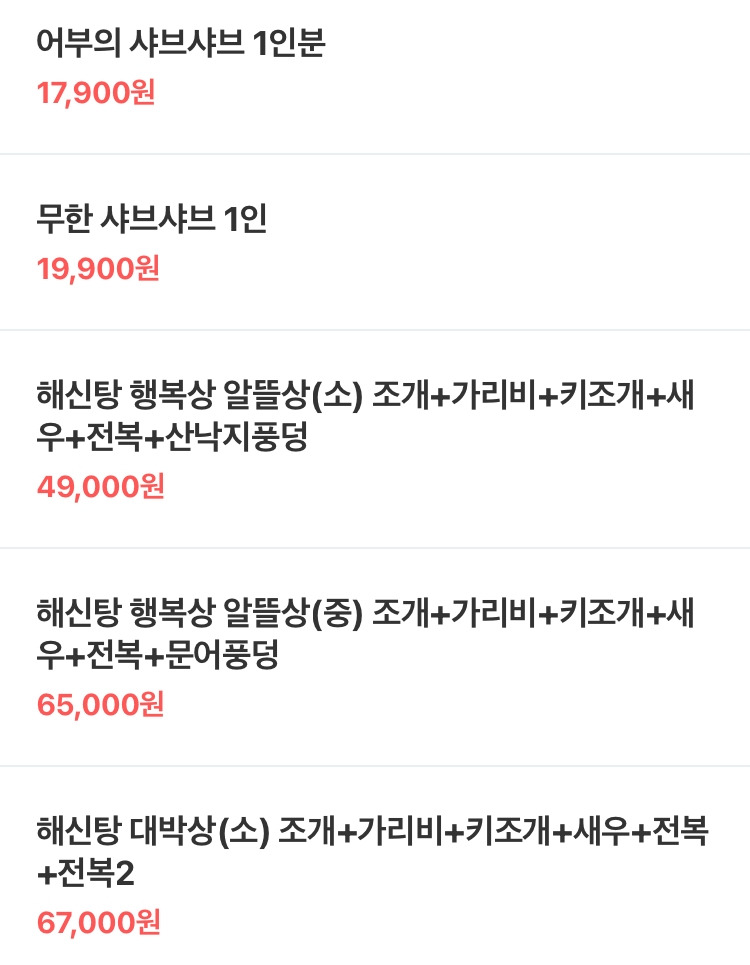 이건 아래 메뉴 중 '중' 자 정도에 해당하는 음식입니다.