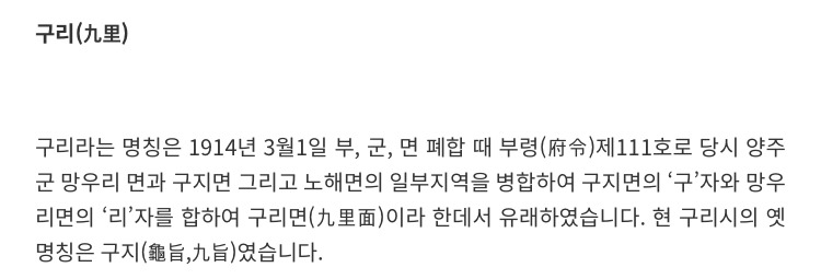 서울 중심지 광화문에서 9리 떨어져 있어, 구리라고 불렸다는 말을 곧이 곧대로 믿었던 저라는 인간.
