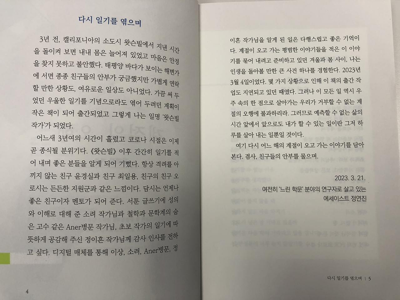 서로 글을 보며 소통해서 친근감은 있었다. 책까지 이번이면 두 번째 보내주시는 거라 친해진 것 같으면서도 한 번도 직접 뵌 적은 없어서 아직 친한 사이라고까지 말하긴 조금 그렇다.