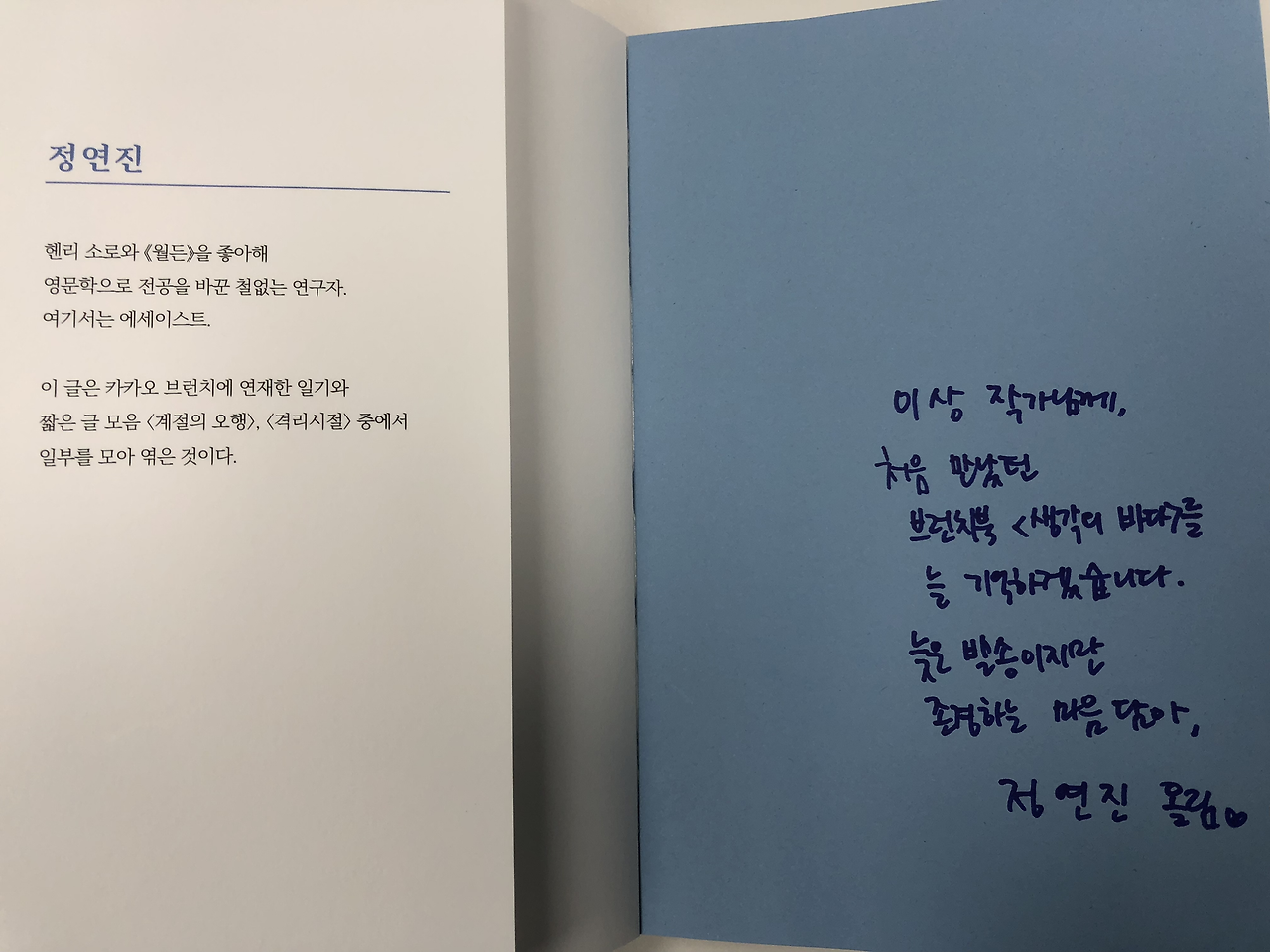 나중에 내 개인 에세이 집이나 소설책이 나오면 이렇게 제가 좋아하는 작가님을 언급해야 겠다는 생각이 들았다.