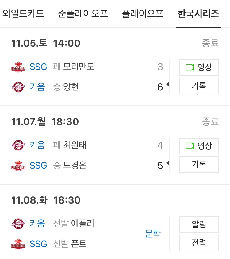 그리고 끝내기 홈런으로 승부가 결정되었을 때, 김광현은 큰 경기에서 에이스 역할을 제대로 못했다는 마음의 짐을 덜어낸 듯 표정이 밝았고, 안우진은 그렇게 잘 던지고도 한국시리즈 승리 투수 1승 기록을 추가할 기대가 사라지면서 얼굴이 급격하게 굳었다.
