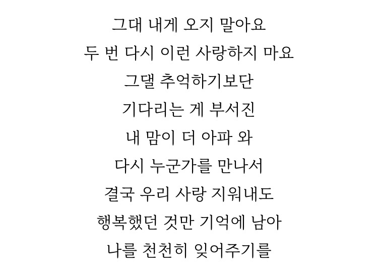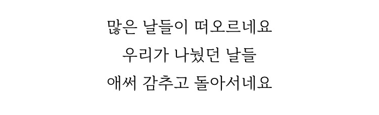 안타깝게도 추억은 다르게 적히지만, 행복했던 추억을 생각해 주며 천천히 날 잊어주길 바랄 뿐이지요. 저처럼요.