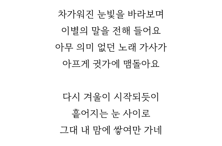휘성처럼 이 곡도 가수가 사고를 쳐서 잘 듣기 어렵게 되었지만, 이별의 감성을 담은 곡으론 최고의 곡 중 하나입니다.