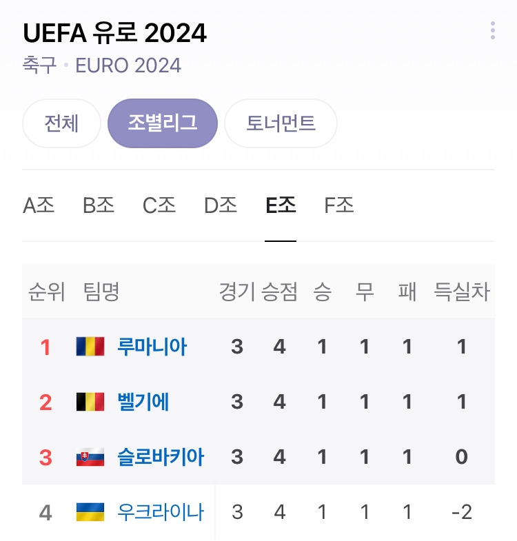 E조는 벨기에의 1강과 3중 팀 간의 격돌이 예상되었는데, 뚜껑을 열어보니 그렇지가 않았습니다.