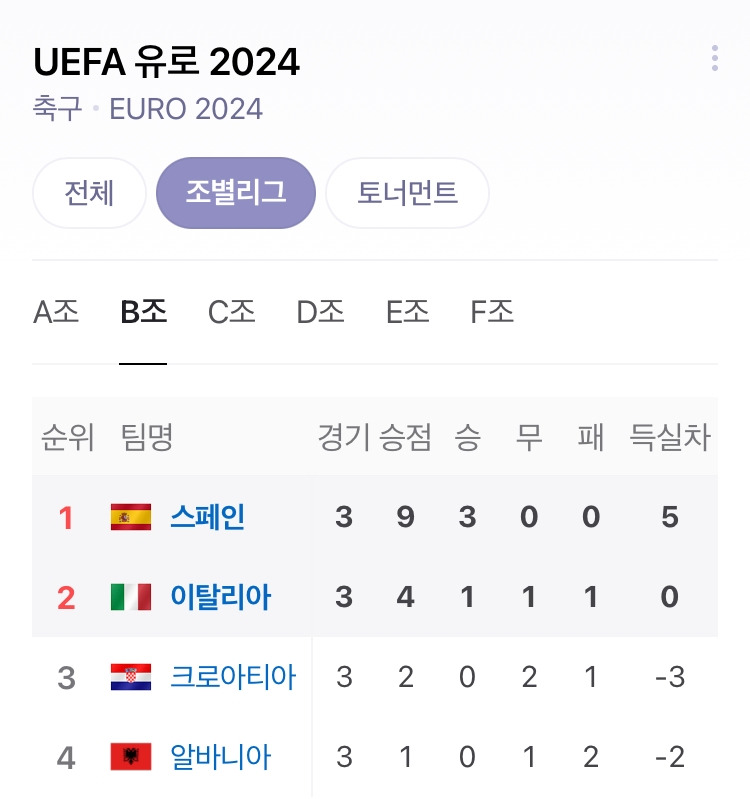 FIFA Ranking 10 위 안에 3개 팀이 포진한 B조는 죽음의 조로, 이번 유로에서 가장 큰 관심을 모았습니다.