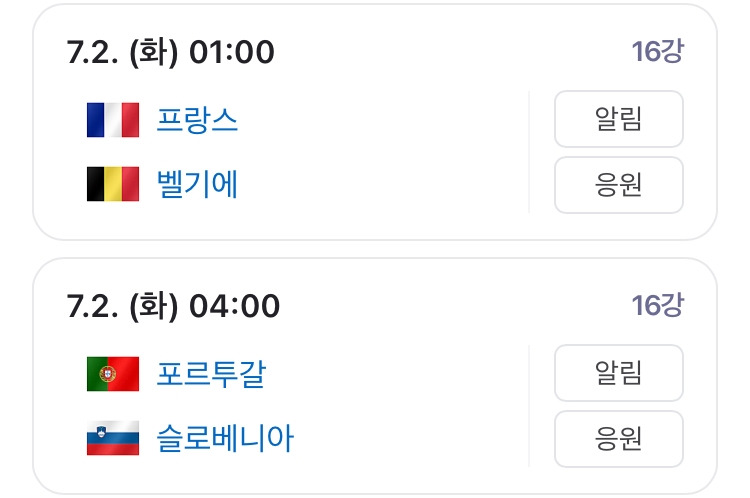 오늘 밤, 정확히는 7/2 (화) 새벽에는 프랑스와 벨기에의 격돌이 예정되어 있습니다.