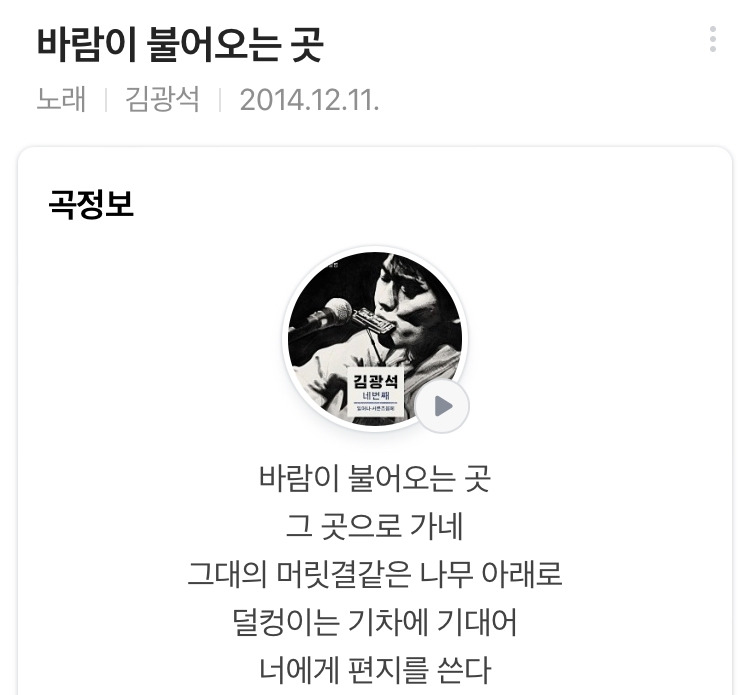 이 노래, 저 노래를 들어보다 이 노래를 만나게 되었는데 너무나 편안했다. 그땐 김광석 님의 곡인 줄 몰랐다. 여성 가수 분의 노래였기 때문이다.