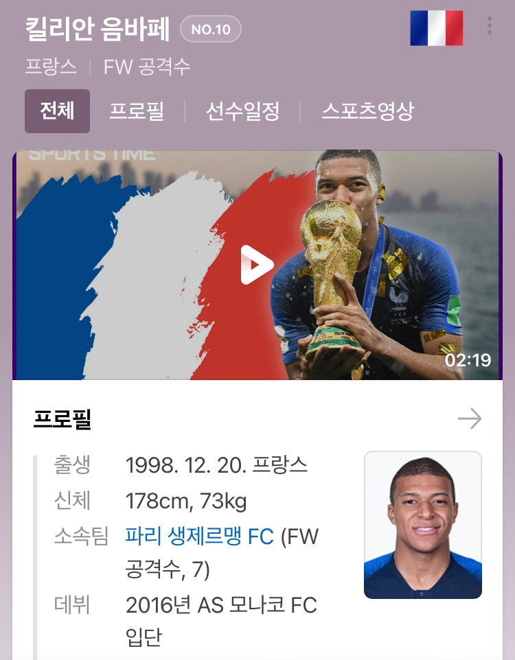 마치 슬램덩크에 나오는 최강팀의 빡빡머리를 연상시키고, 자신이 가진 재능만큼 빛나는 눈빛을 가진 선수. 전 대회 16강 전에서 메시의 아르헨티나를 탈락시키고, 메시를 은퇴시켜버린 친구.