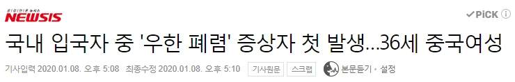 그때만 하더라도 국내엔 해당 병명의 감염자가 발생하지 않았었고